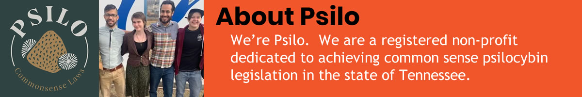 Psilo is a non-profit organization based in Memphis, Tennessee. Our board and members believe the Tennessee State Legislature should follow their own guidelines and remove psilocybin and psilocin from the Tennessee Drug Control Act of 1989.